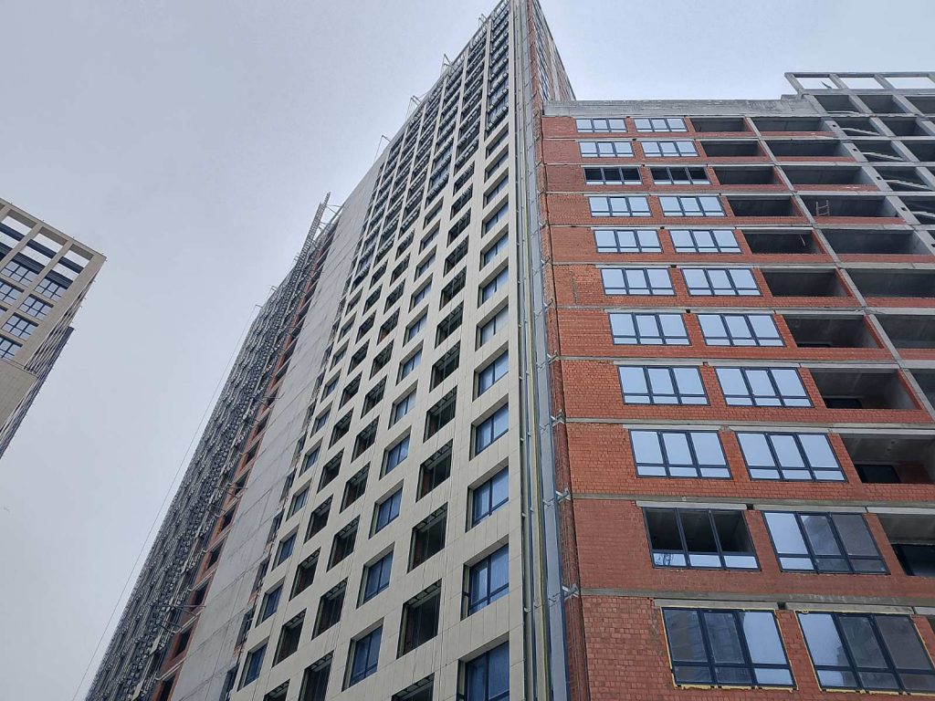 | Монтаж керамогранітної плитки фасаду (сторона внутрішнього двору) |