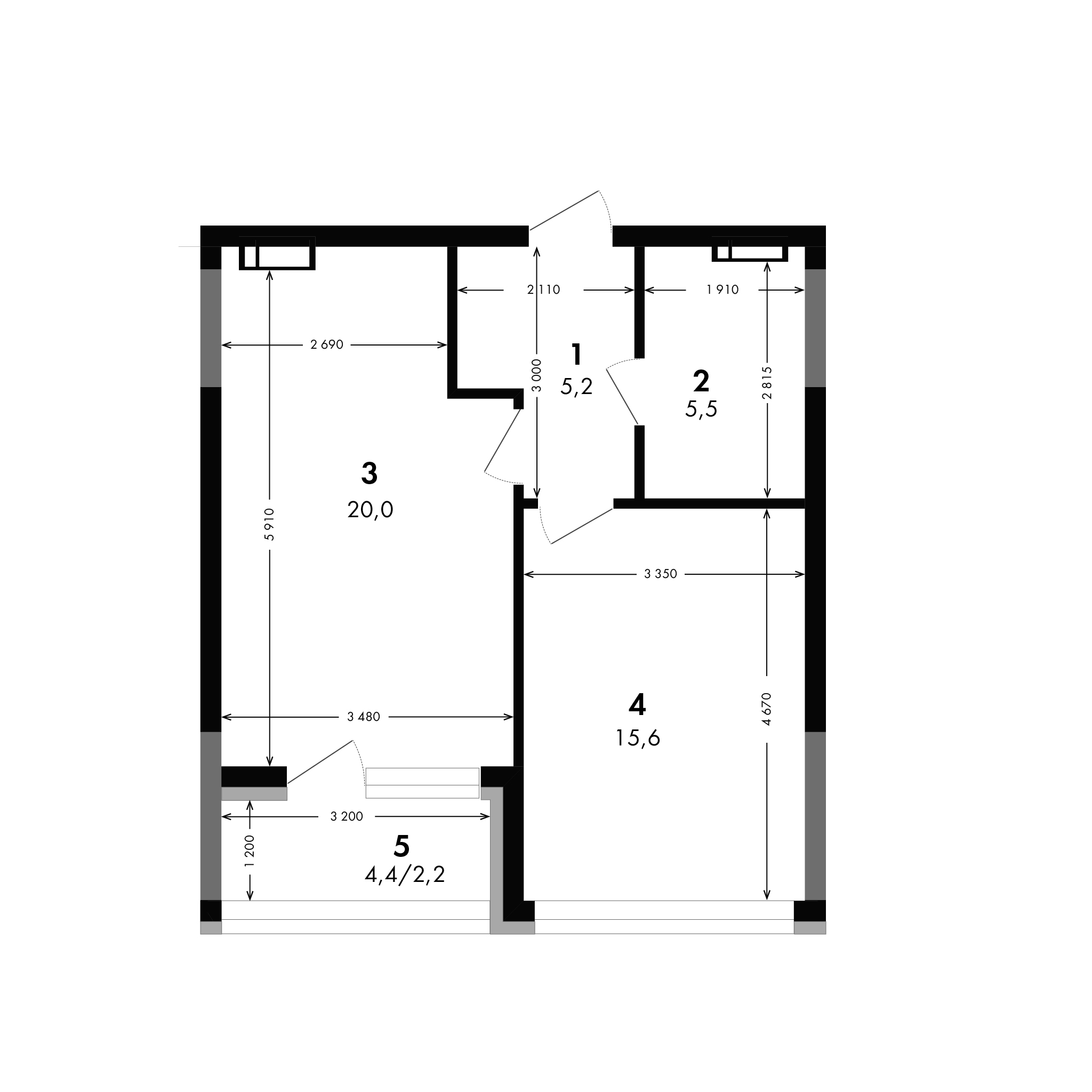 1.  Corridor: 5.2 м2